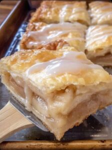 Chicago-Style Bakery Apple Slices aren’t fancy or delicate. They’re sturdy, generous, and made to be eaten with a napkin and a cup of coffee. The crust is soft, the apple filling is spiced but not overpowering, and the glaze ties everything together in that unmistakable old-school bakery way.