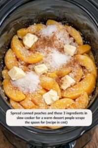 This dish is all about the transformation of textures. In the low, steady heat of the slow cooker, the peaches become syrupy and tender, while the cake mix and butter fuse into a golden, cobbler-like topping that is part soft sponge and part buttery crumble.