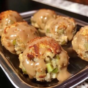 Turkey and stuffing balls take everything you love about a classic holiday plate and turn it into snackable, golden bites: seasoned turkey, herby stuffing, and a tender center with crisp edges. They’re perfect for using leftovers, perfect for parties, and perfect for dipping in gravy or cranberry sauce.